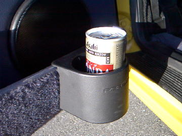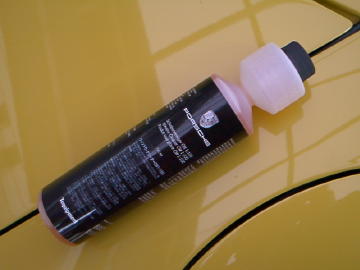 | 木星会さんからいただき物のポルシェ純正の993用カップホルダーです。ドアポケットに引っ掛けられるようになってます。ホルダーの表面にはレザーが貼り付けてあり、高級感があります。 | ウインド・ウォッシャー液のモニターランプが点灯しましたので、ポルシェ純正の物を購入しました。税込みで¥1218です。ボトル上部に液を溜めて5リットルの水で薄めました。100:1の割合です。 |