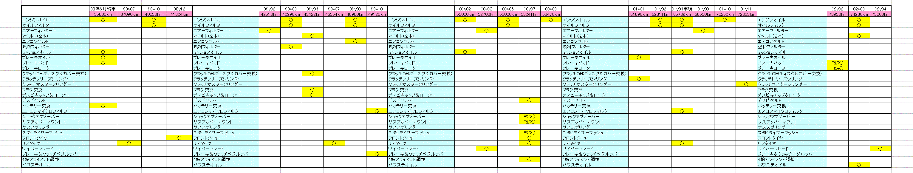 (1998年6月納車〜2002年4月迄 修理項目は含まず)