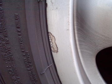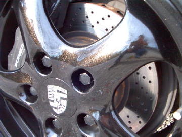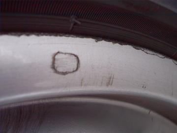 | 993純正17インチアルミホイールも80000kmも使えば傷が絶えません。下記画像は傷修理前の状態です。 | |