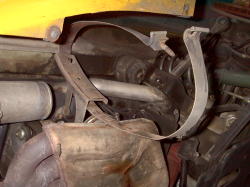 | 13.ノーマルマフラーより熱遮閉板を外しスポーツマフラーに取りつけます。 | 14.左スポーツマフラーを取りつけます。 | 15.バンドにしっかり固定する。 | 16.右上部の遮閉板を取りつけます。 |