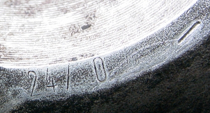 | モミジさんの94y993カレラは3.8Lにチューンされてます。その時に外したノーマルの3.6L用シリンダーには軽量ピストンが装着されてたようです。軽量ピストンには「24/0」という刻印がされています。その横に―印が一個だから596-600gのピストンということになります。「24/0」軽量ピストンは95yから採用されてるようですが逆にコンロッドが少し重くなったそうです。94yモデルでは7月〜8月生産モデルにこの「24/0」軽量ピストンと軽量コンロッドの組み合わせが存在するらしく幻の超絶993と呼ばれてるらしい。ちなみに軽量コンロッドは外して重量を測るしか方法がなく事実上確認は困難らしい。(詳しくはNED VOL.2 P25を参考) |
