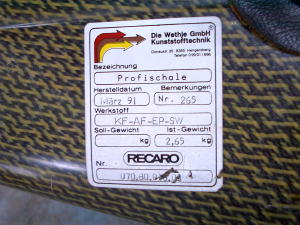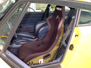 | GTブラザーズのクマ吉さんより新品同様のレカロ バケットシートを譲っていただきました。型名はSP−Aというカーボン製でありレカロの最高級品です。重量はわずか2.65kgと片手で軽く持てます。(^^) さっそく993Cに取りつけました。背筋がきちんと伸びますし横Gに対するホールド感も抜群です。これでワインディングやサーキットもさらに楽しくなるでしょう。尚、純正スポーツシートとついでにリアシートの背もたれを外しましたのでトータル20.45kgの軽量化になりました。これも大きな成果ですね。クマ吉さん!たいへんいいものを譲っていただき感謝です。m(_ _)m | ||||||||||